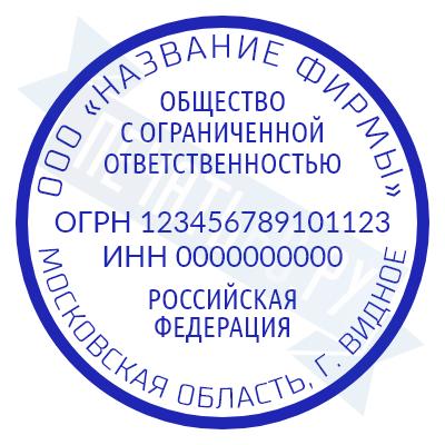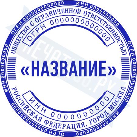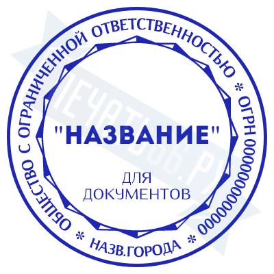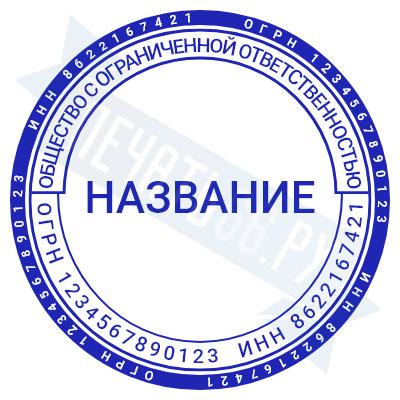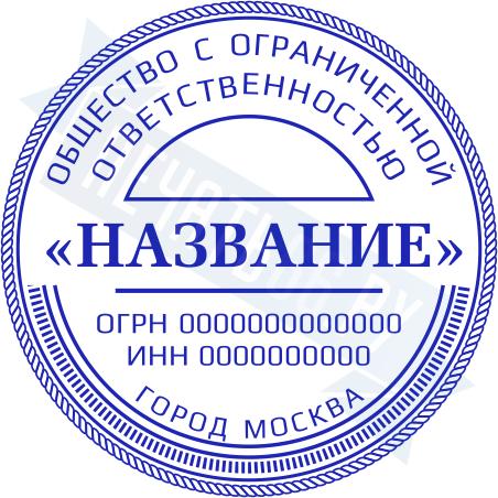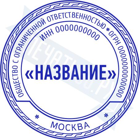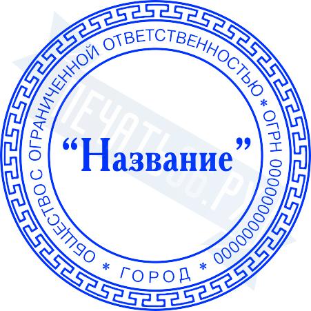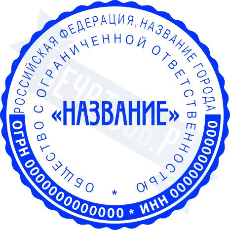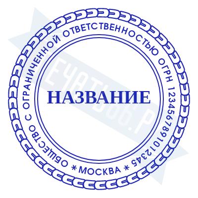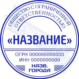 - Печать ООО стандартная на металлической оснастке Эйфель (чернение) D40, 40мм по цене 2777 рублей и еще 69 видов стандартных печатей